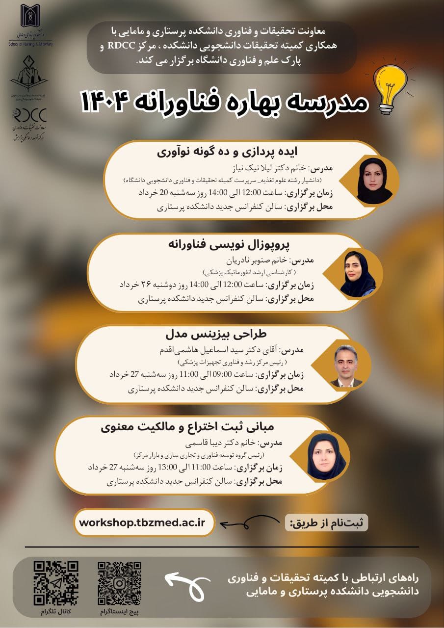 معاونت تحقیقات و فناوری دانشکده پرستاری و مامایی با همکاری کمیته تحقیقات و فناوری دانشکده، مرکز RDCC و پارک علم و فناوری دانشگاه برگزار می کند.