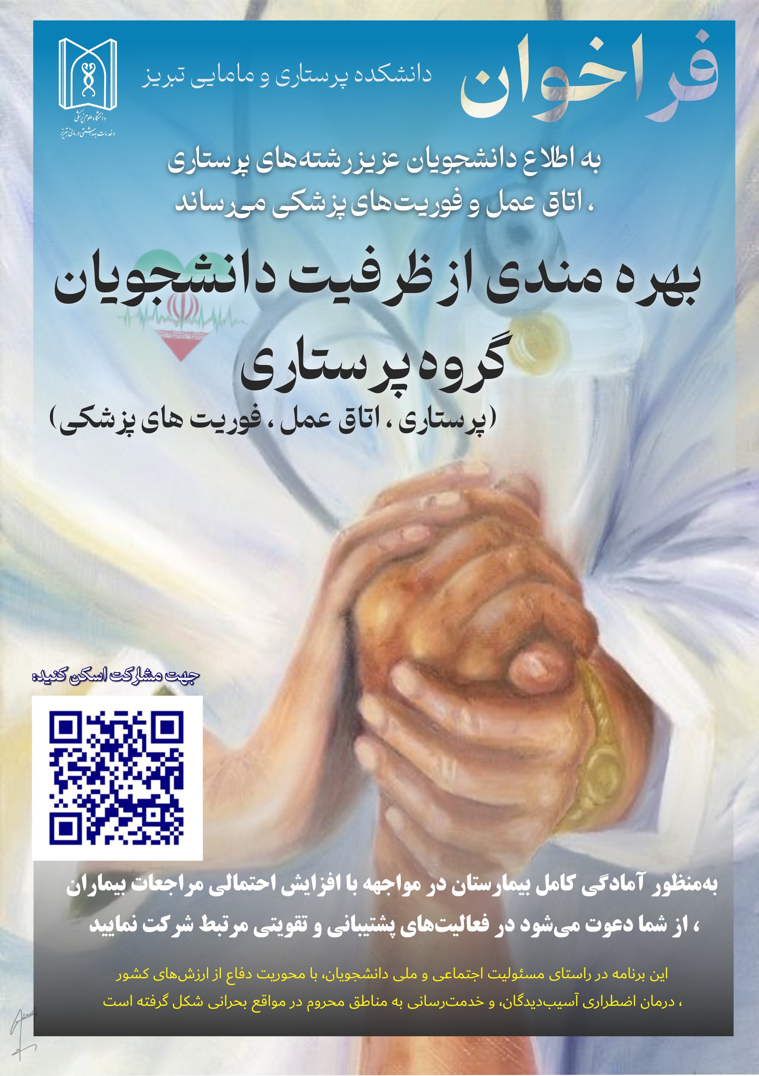 فراخوان بهره مندی از ظرفیت دانشجویان گروه پرستاری (پرستاری، اتاق عمل و فوریت پزشکی)