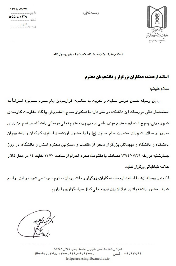 احتراماً ضمن عرض تسلیت و تعزیت بمناسبت فرا رسیدن ایام محرم حسینی، بدینوسیله ...