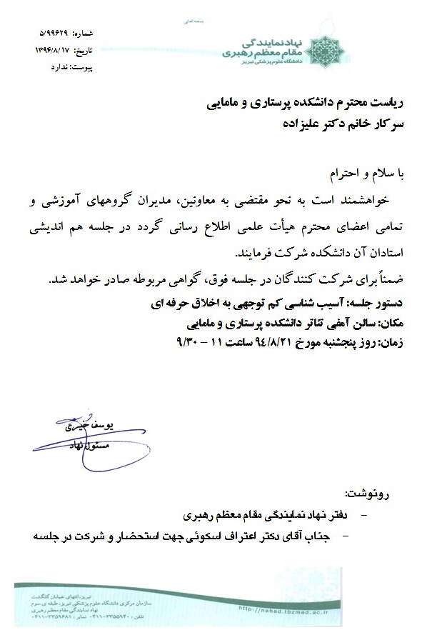 نهاد نمایندگی مقام معظم رهبری در دانشگاه علوم پزشکی تبریز برگزار می کند.