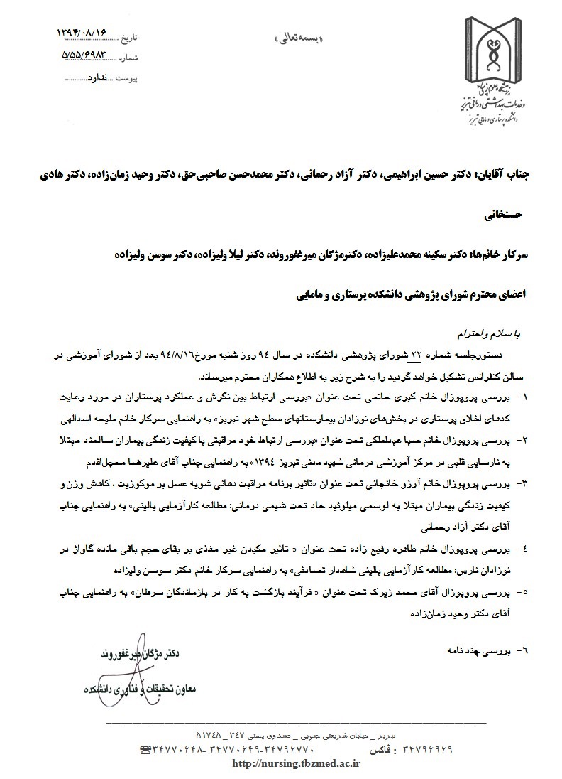 دستور جلسه شماره 22 شورای پژوهشی دانشکده (شنبه 16 آبان 94)