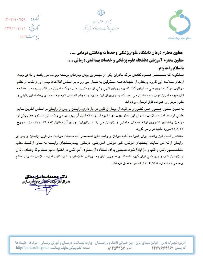 دستورالعمل کشوری "مراقبت از بیماران قلبی در بارداری، زایمان و پس از زایمان"