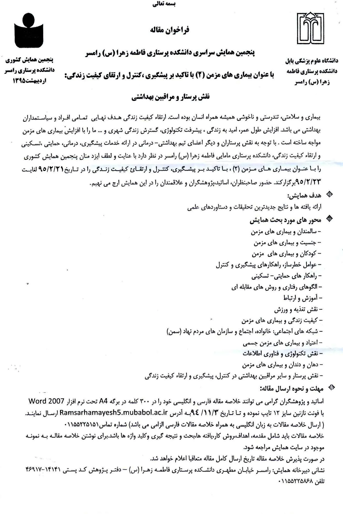 برگزار کننده: دانشکده پرستاری فاطمه زهرا رامسر، دانشگاه علوم پزشکی بابل