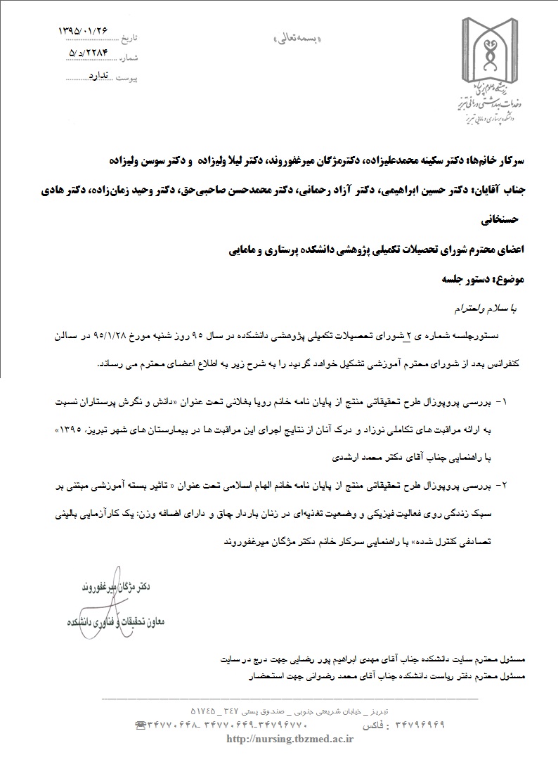 دوّمین جلسه شورای تحصیلات تکمیلی پژوهشی دانشکده در سال 95
