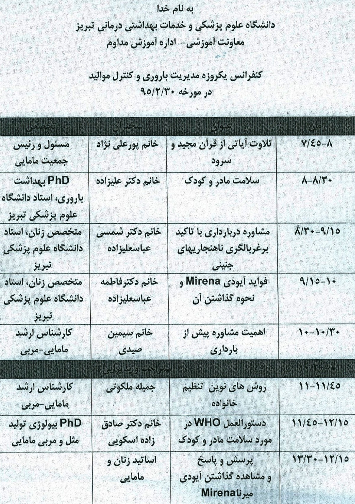 کنفرانس یک روزه مدیریت باروری و کنترل موالید