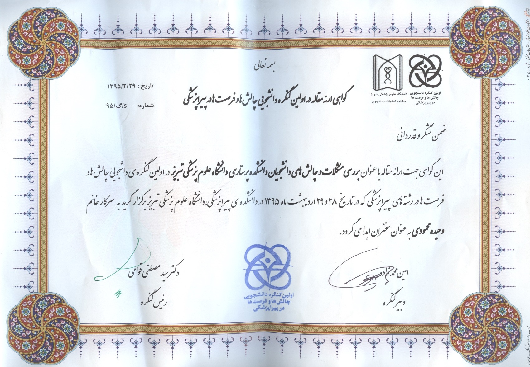 تبریک موفقیت دانشجوی دانشکده؛ سرکار خانم وحیده محمودی