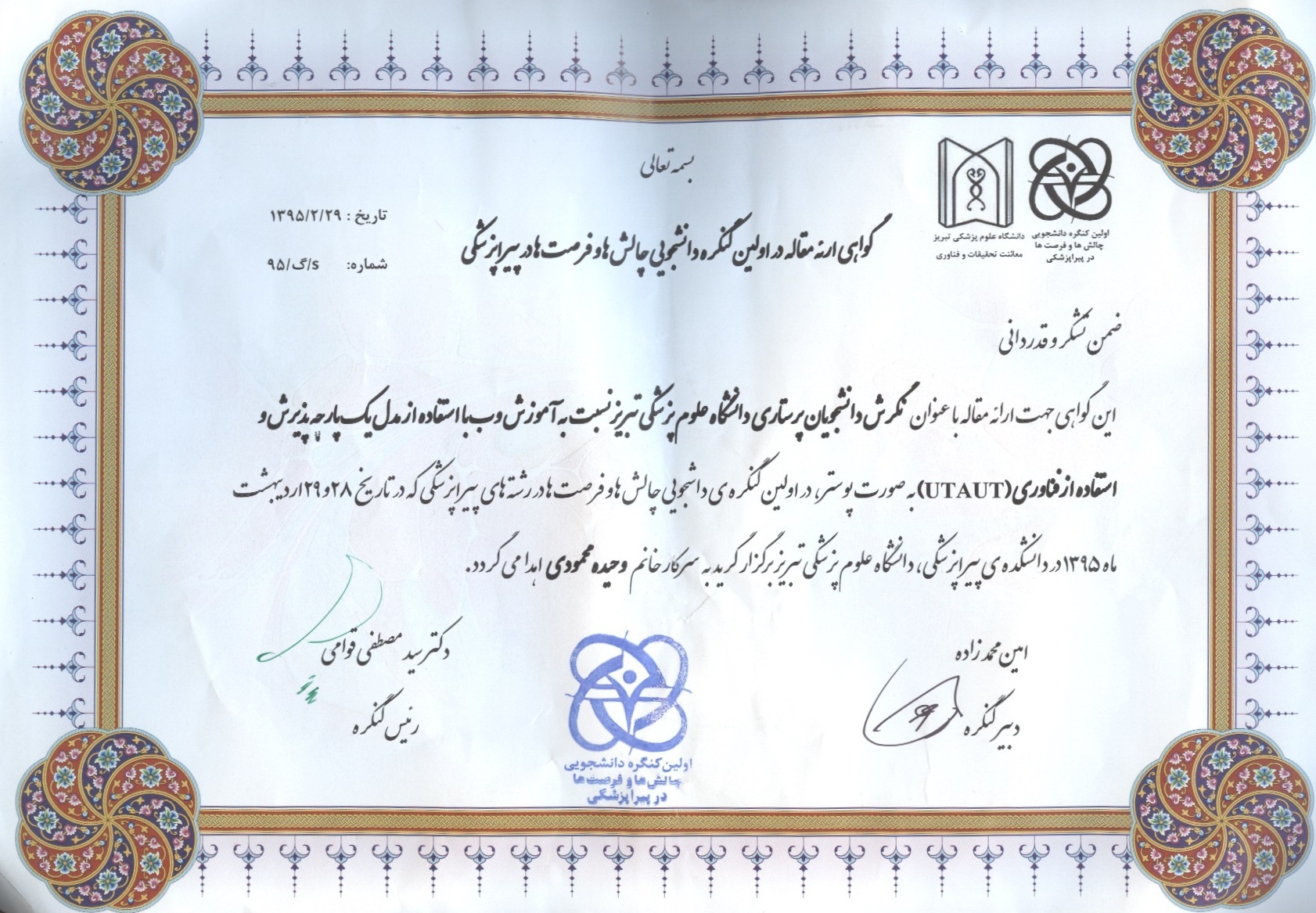 بدینوسیله موفقیت دانشجوی دانشکده؛ سرکار خانم وحیده محمودی در "اولین کنگره دانشجویی چالش ها و فرصت ها در رشته های پیراپزشکی" را خدمت ایشان و خانواده محترمشان و نیز کلیّه دانشجویان و همکاران دانشکده تبریک و تهنیت عرض نموده، موفقیت روزافزونشان را از درگاه خداوند منان خواستاریم.