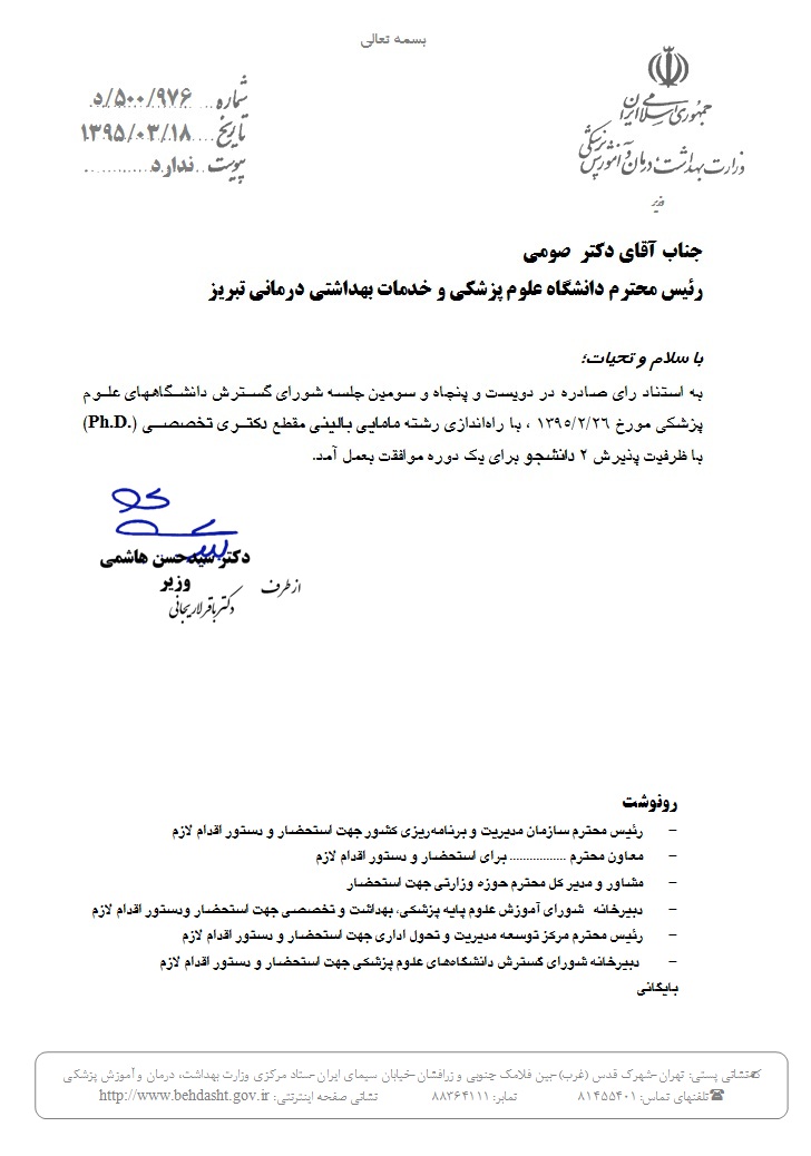 با استناد رأی صادره در دویست و پنجاه و سومین جلسه شورای گسترش دانشگاه های علوم پزشکی کشور، با راه اندازی رشته مامایی بالینی دکتری تخصصی (Ph.D) با ظرفیت پذیرش 2 دانشجو برای یک دوره ...