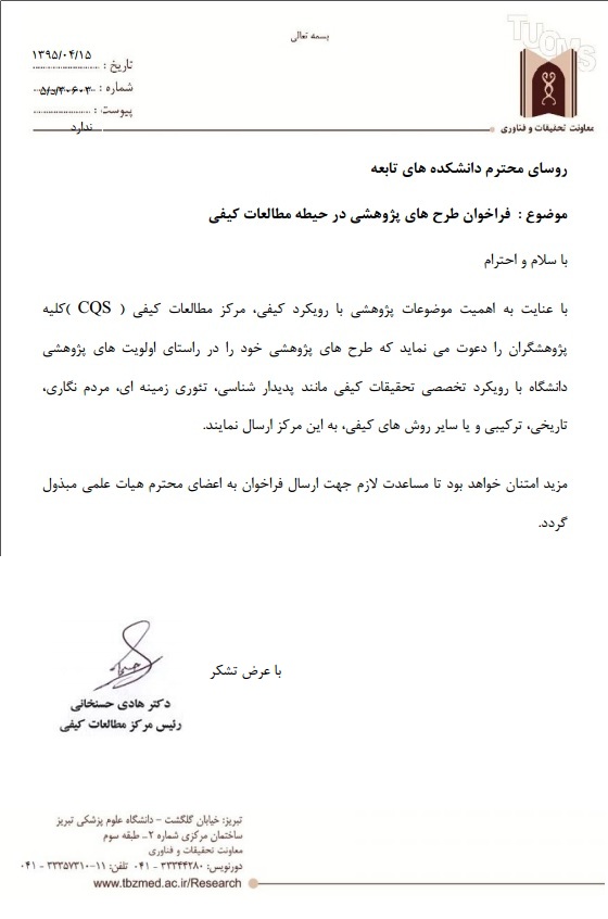 فراخوان طرح های پژوهشی در حیطه مطالعات کیفی