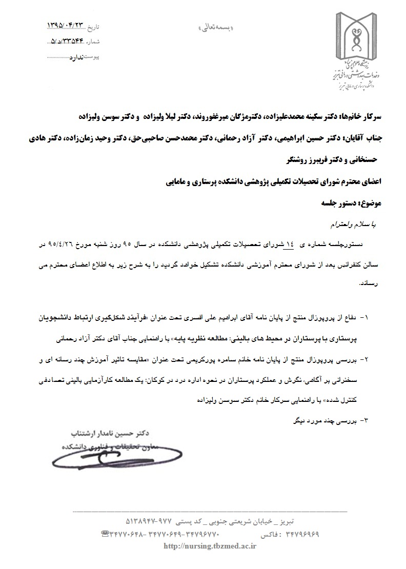 چهاردهمین جلسه شورای پژوهشی دانشکده در سال 94
