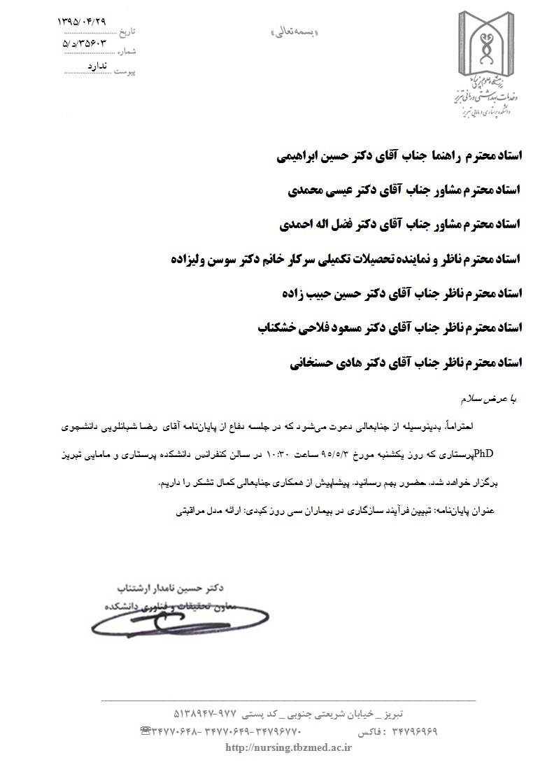 جلسه دفاع آقای رضا شبانلویی، دانشجوی دکترای پرستاری