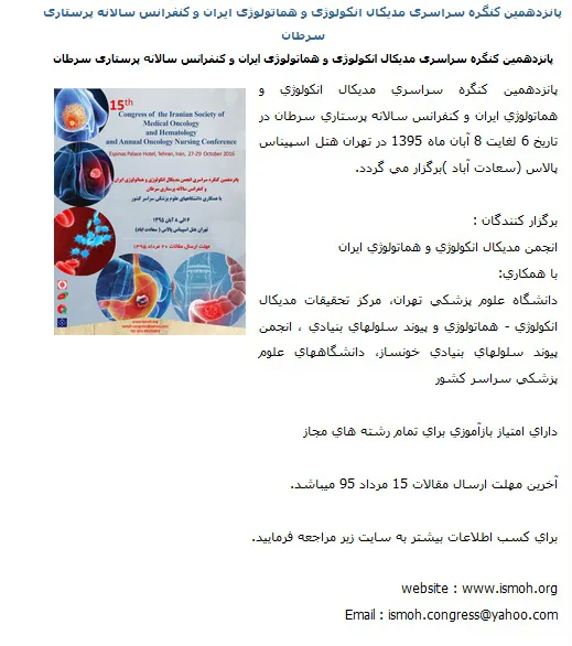 همایش همزمان: پانزدهمین کنگره سراسری انجمن مدیکال انکولوژی و هماتولوژی ایران