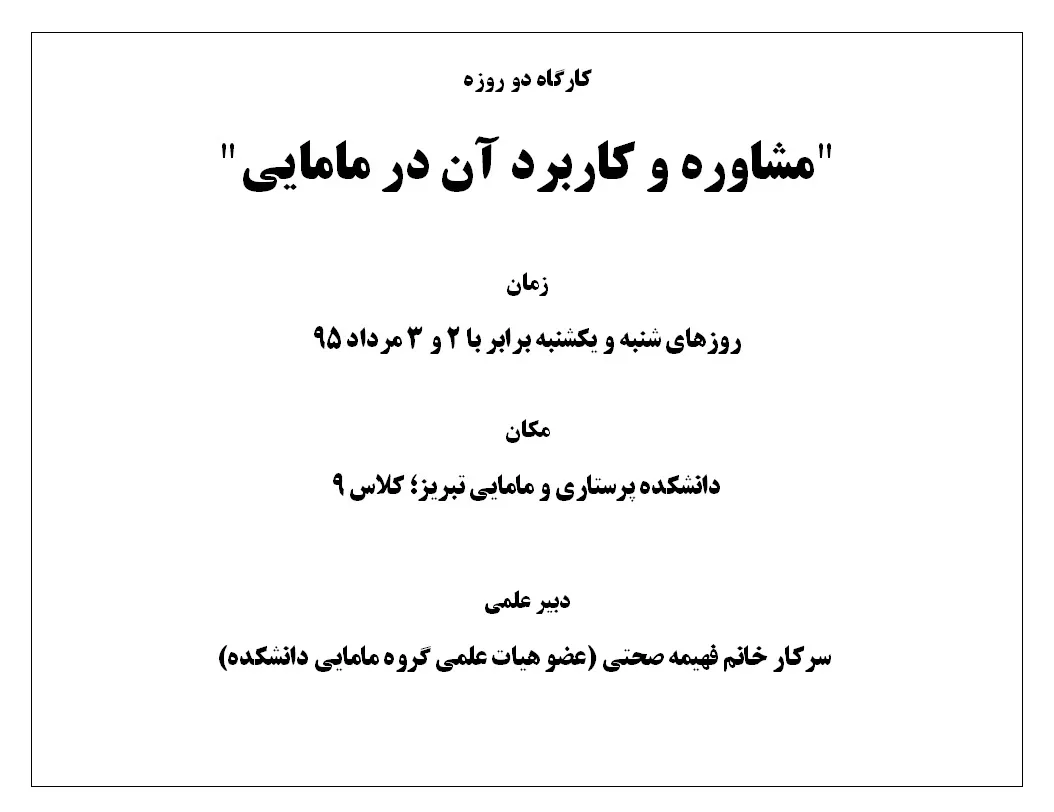 کارگاه دو روزه "مشاوره و کاربرد آن در مامایی"