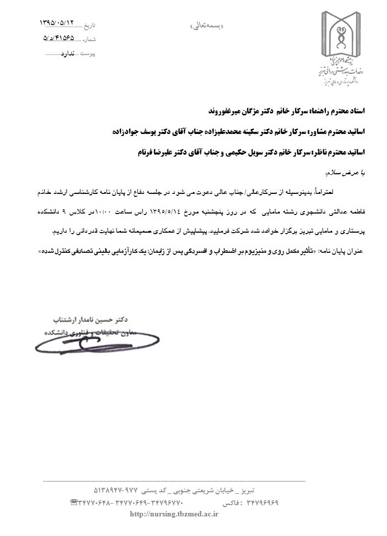 جلسه دفاع از پایاننامه خانم نیشتمان علیدوست