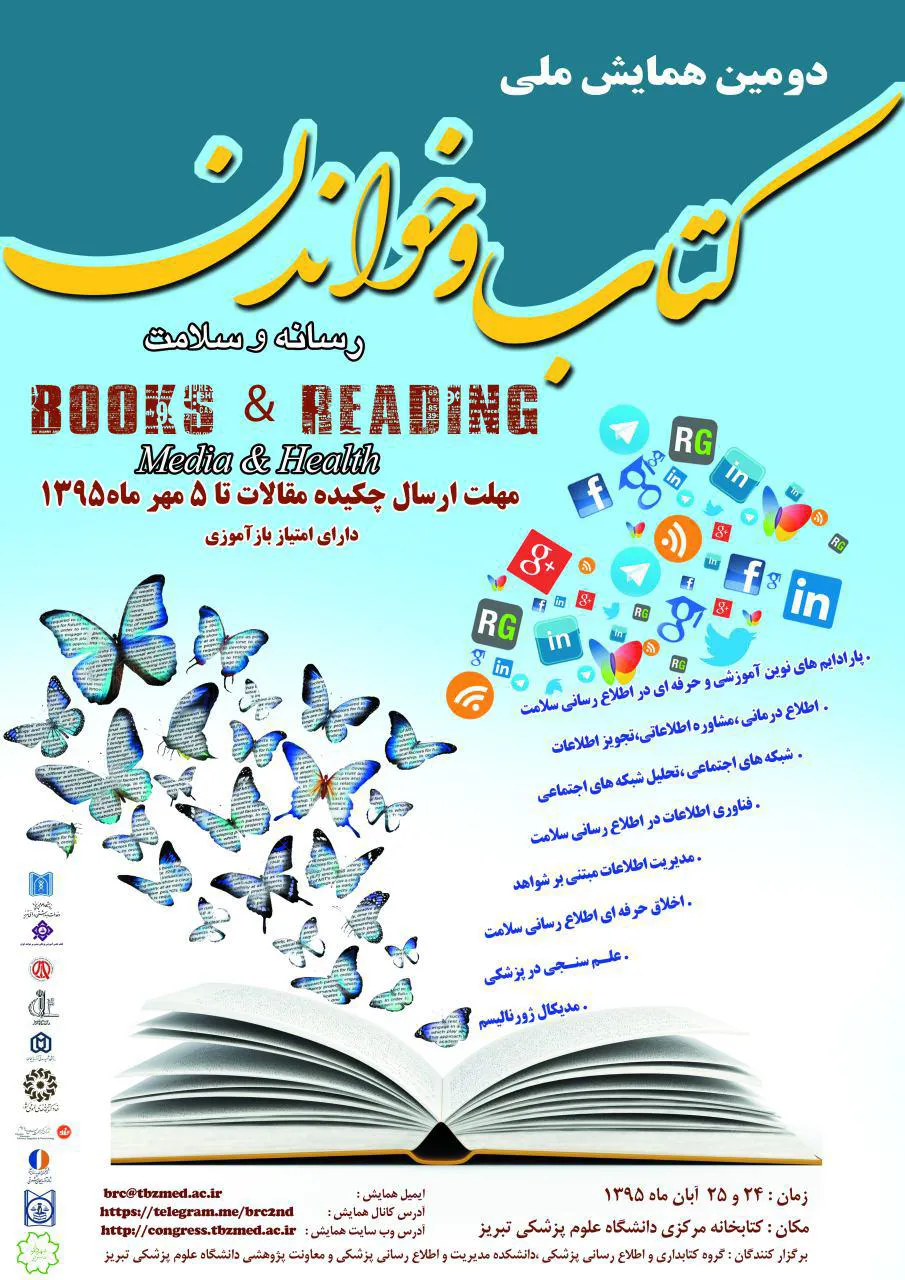 دوّمین همایش ملّی کتاب و خواندن؛ رسانه و سلامت؛ به همّت گروه کتابداری و اطلاع رسانی پزشکی، دانشکده مدیریت و اطلاع رسانی پزشکی و معاونت پژوهشی دانشگاه علوم پزشکی تبریز روزهای 24 و 25 آبان برگزار خواهد گردید.