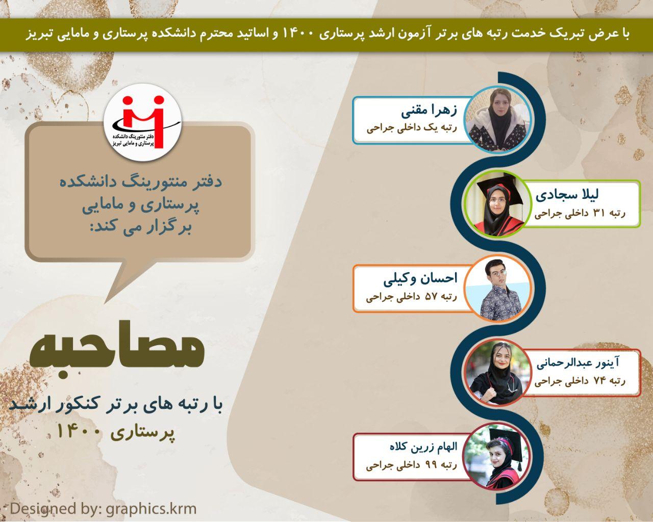 * مصاحبه با رتبه های برتر کارشناسی ارشد دانشکده پرستاری و مامایی 1400. پوستر برنامه / تصاویر (1 / 2 / 3 / 4 / 5 / 6 / 7)
