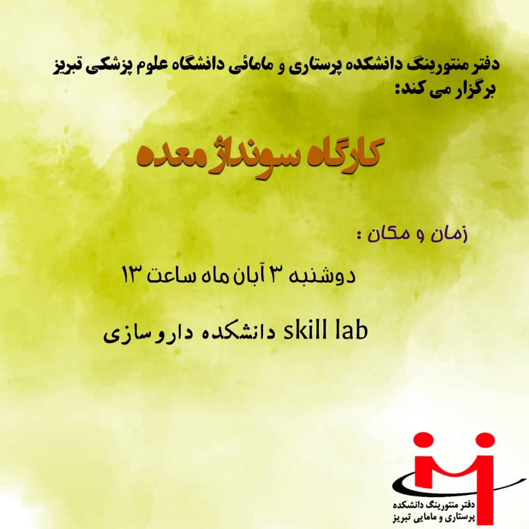 * کارگاه سونداژ معده در سایت مهارت های بالینی دانشکده داروسازی (3 آبان 1400). پوستر برنامه / تصویر