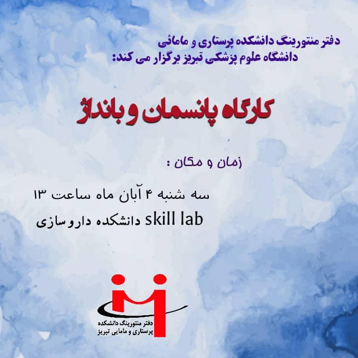 * کارگاه پانسمان و بانداژ در سایت داروسازی دانشکده داروسازی (4 آبان 1400). پوستر برنامه / تصویر