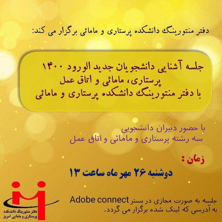 * جلسه آشنایی دانشجویان جدیدالورود مهر ماه 1400 با فعالیت و اهداف های دفتر منتورینگ (26 مهر 1400). پوستر برنامه / تصاویر (1 / 2)