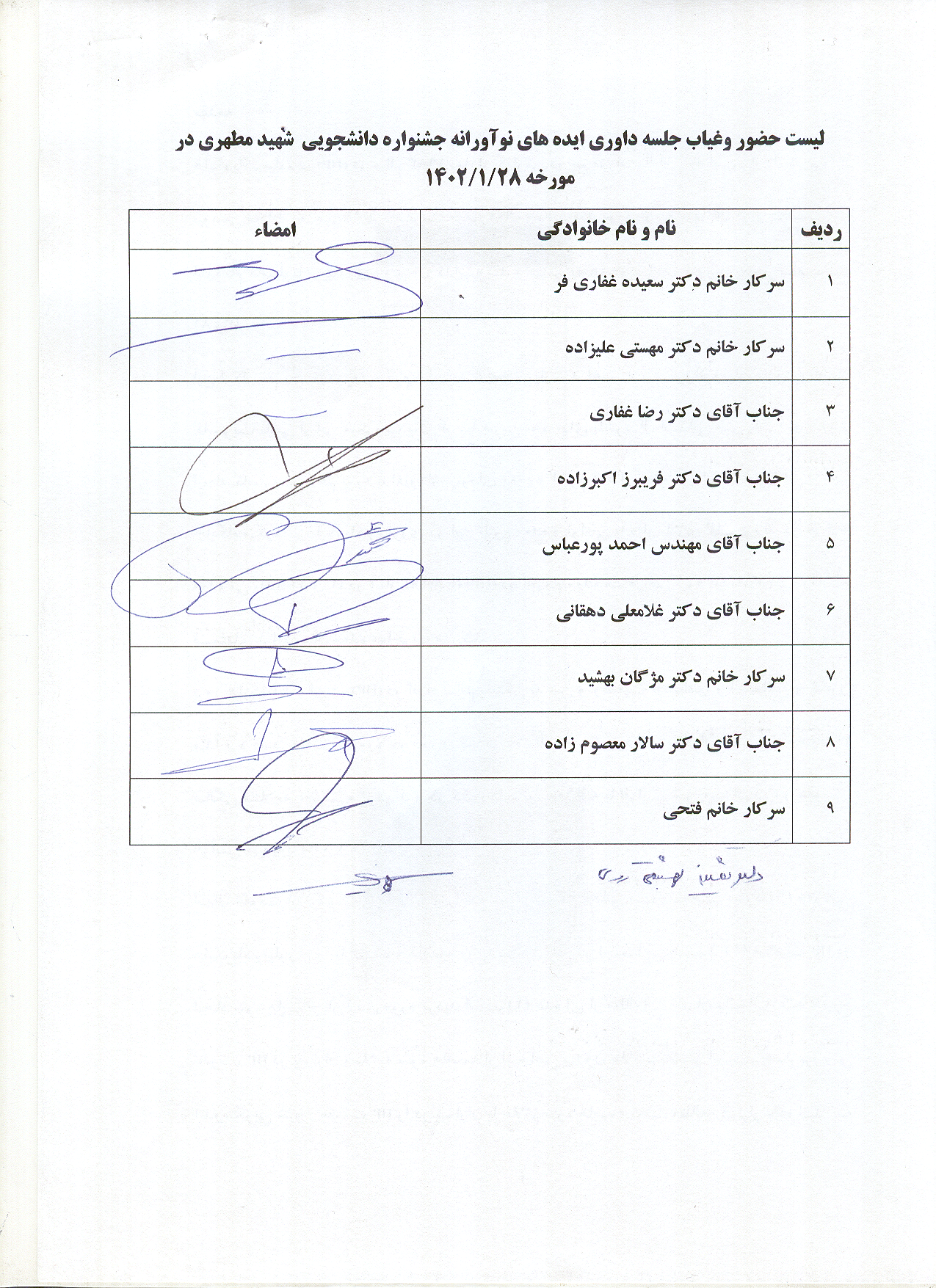 لیست حضور و غیاب جلسه داوری ایده های نوآورانه